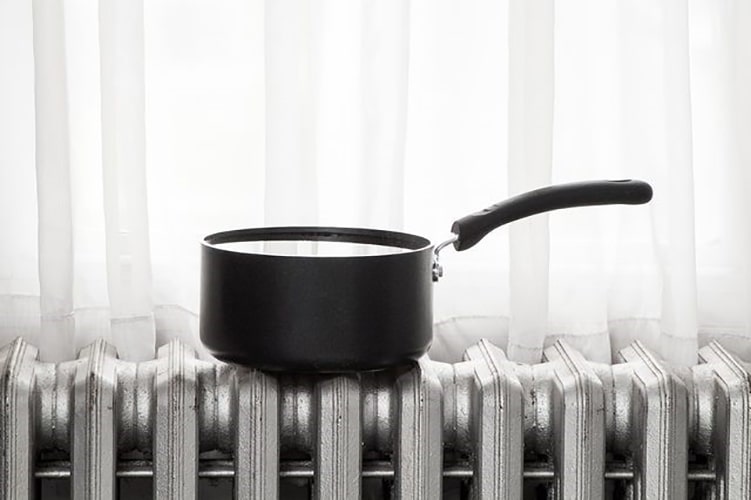 برای آن که بتوانید فضای منزل خود را مرطوب نگه دارید، تنها کافی است چندین ظرف را پر از آب نمایید و در جاهای مختلف از خانه قرار دهید. راه حل دیگری که می توانید به کار بگیرید این است که همان ظرف آب را روی رادیاتور یا بخاری قرار دهید بدین صورت آب داخل ظرف به کمک گرما و حرارت تبخیر می شود و در نهایت هوای خانه مرطوب می شود.