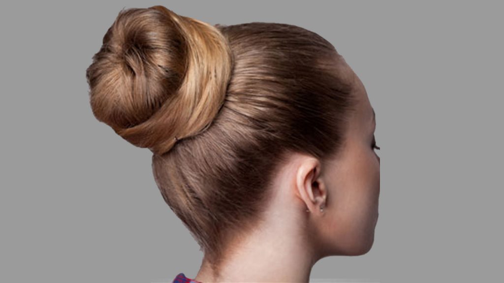 - موها را از اطراف لوله کنید و دور جوراب یا دونات بپیچید و دونات را در انتهای مو قرار دهید