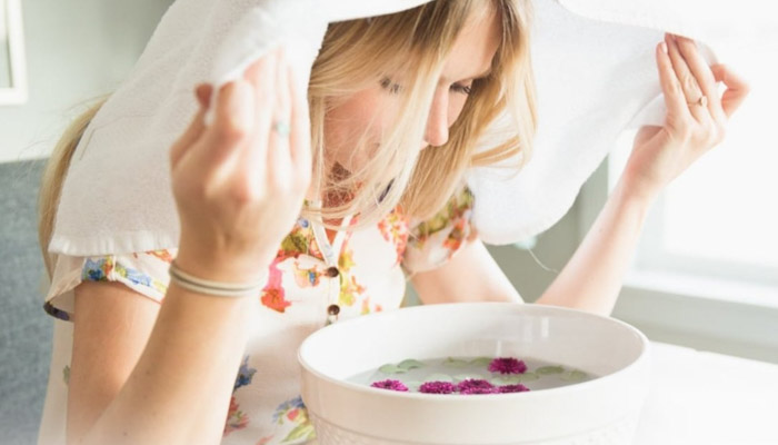 مقداری آب را داخل یک ظرف بریزید و روی حرارت بجوشانید. (گیاهان خشک، تازه و روغن های گیاهی هم می توانید به آب اضافه کنید.) ظرف را از روی حرارت بردارید. روی سر خود حوله ای بیندازید و صورت خود را مقابل بخار آب قرار دهید. به مدت 10 الی 15 دقیقه صورت تان را بخور دهید تا منافذ پوست تان کامل پاکسازی شود. سپس صورت خود را بخشکانید و برای متعادل کردن PH پوست از تونر پوست و برای مرطوب کردن آن از مرطوب کننده ملایم استفاده کنید.
